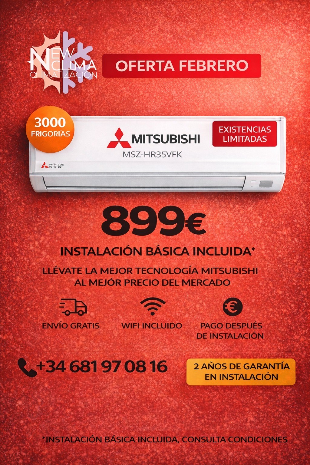Mitsubishi MSZ-HR35VFK A/A 1x1 Split con WiFi + Instalación Incluida